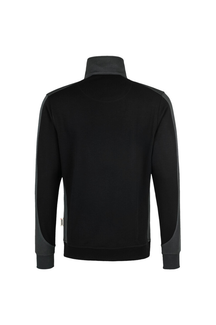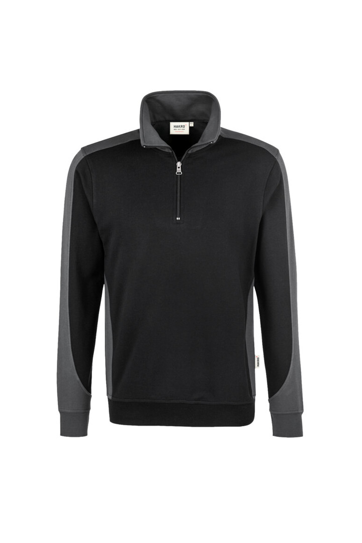 Besonders strapazierfähiger Troyer mit kontrastfarbigen Einsätzen an den Seiten, Schultern und Ärmeln, hochwertigem Reißverschluss von YKK®, formstabilen Bündchen mit LYCRA®-Anteil, nicht angerauter Innenseite (French-Terry) und Nackenband. Leasingkoller zur einfachen Kennzeichnung in der gewerblichen Wäscherei und Aufhängebänder im Saum. Hergestellt aus weicher, besonders pflegeleichter und funktioneller Maschenware aus dem HAKRO Performance-Materialmix Mikralinar®. Gewebtes HAKRO Necklabel aus hochwertigem Kettsatin mit weichen, ultraschallgeschnittenen Bandkanten für höchsten Tragekomfort und gewebtes HAKRO Flaglabel an der linken Seitennaht.