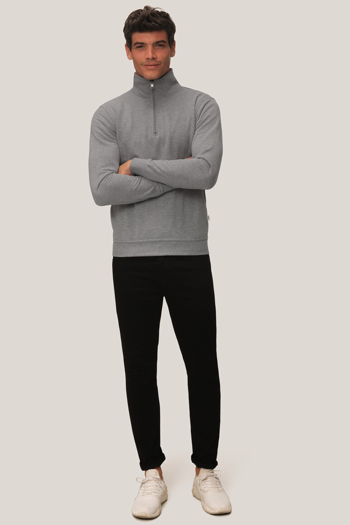 Klassischer Troyer mit hochwertigem Reißverschluss von YKK®, formstabilen Bündchen mit LYCRA®-Anteil, nicht angerauter Innenseite (French-Terry) und Nackenband. Hergestellt aus pflegeleichter Baumwoll-Polyester-Mischung für höchste Ansprüche. Gewebtes HAKRO Necklabel aus hochwertigem Kettsatin mit weichen, ultraschallgeschnittenen Bandkanten für höchsten Tragekomfort und gewebtes HAKRO Flaglabel an der linken Seitennaht.