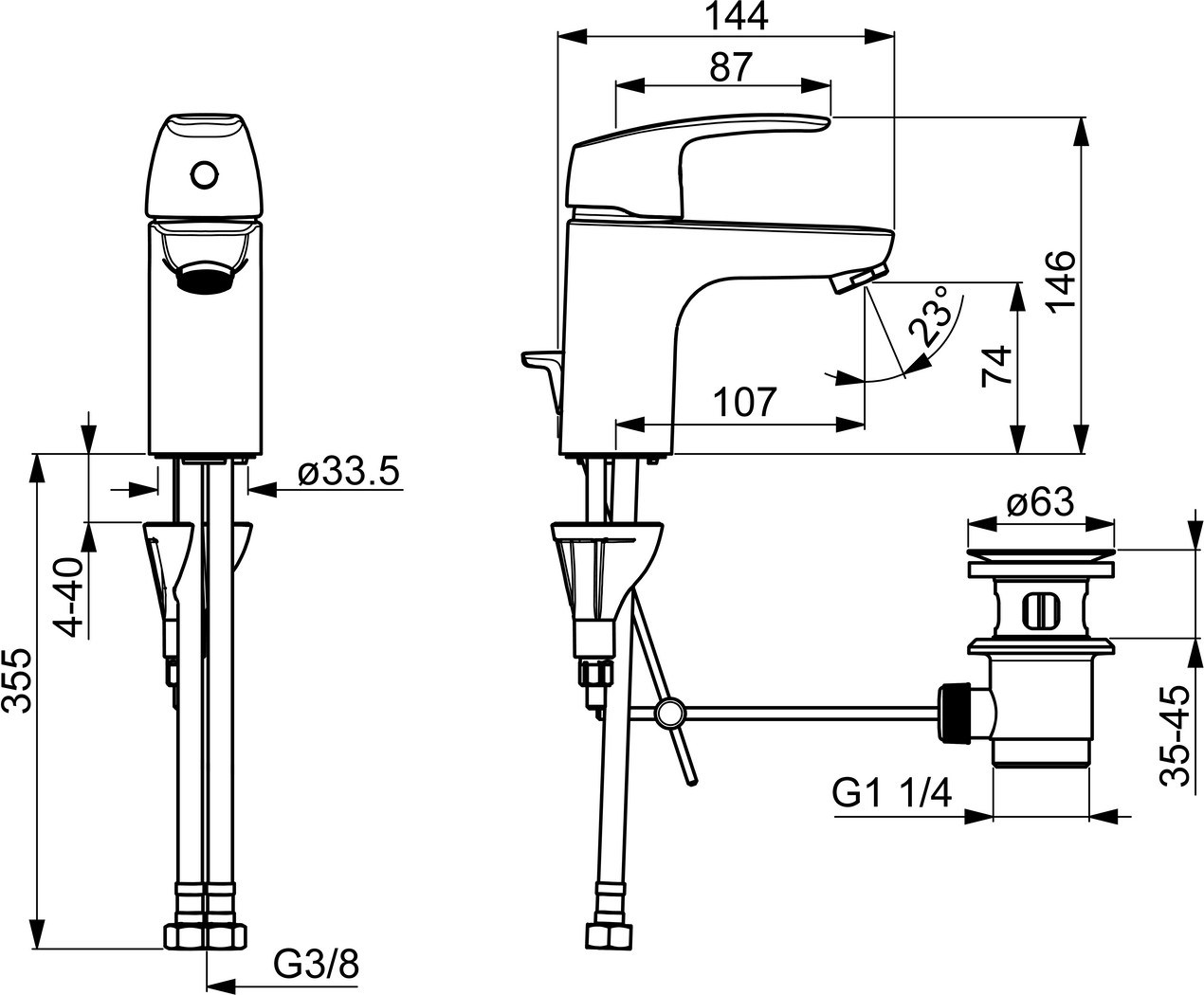 DN 15, Heißwasserversorgung max. 70°C, Arbeitsdruck 0,5-10 bar, Durchfluss bei 3 bar (mit Regler) 6 l/min, Anschlussgröße G3/8, Ausladung 107 mm, Sicherungseinrichtung (EN1717) AA, Geräuschklasse I (ISO 3822), Material Messing, 3S-Installation: System für sichere und schnelle Montage, Armaturenkörper aus entzinkungsbeständigem Messing (DZR), Anschluss über fexible Druckschläuche, ohne silikonhaltige Fette, Ø 4,0 Steuerpatrone mit keramischen Dichtscheiben zur Wassermengen- und Temperatureinstellung, Hebel mit W+K-Kennzeichnung, Einhandbedienhebel/Griff, Ablaufgarnitur mit Zugstange, konstante Durchfussleistung unabhängig vom Fließdruck, Strahlregler, Temperaturbegrenzer, Heißwassersperre einstellbar (im Lieferumfang enthalten), feststehender Auslauf