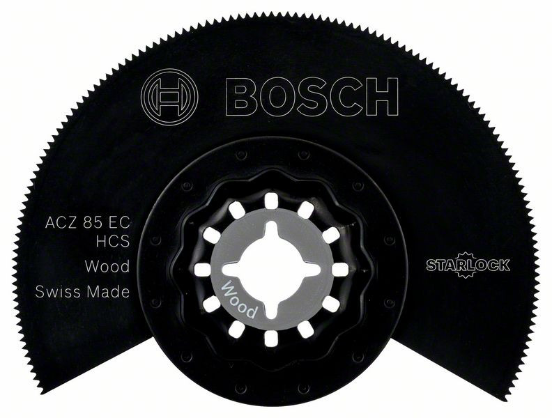 Das Segmentsägeblatt Starlock ACZ 85 EC ermöglicht zuverlässig Schnitte in Holz. Die spitzen Sägeblattenden ermöglichen bei Arbeiten in Holz Schneidearbeiten in schwer zugänglichen Ecken in gleichbleibender Qualität. Das Blatt besteht aus HCS-Stahl (Stahl mit hohem Kohlenstoffgehalt) der ideal für das Bearbeiten von Holz geeignet ist. Dieses Starlock-Zubehör ist ausgelegt für das Tauchsägen und bündige Schnitte in Massiv- und Weichholz sowie das Sägen von Kunststoff, wie etwas beim Ablängen von Rohren. Das Starlock-Aufnahmesystem ermöglicht einen schnellen Blattwechsel ohne Blattberührung in drei Sekunden. Das Starlock-Aufnahmesystem ermöglicht durch seine dreidimensionale enge Passung maximale Kraftübertragung zwischen Maschine und Zubehör.