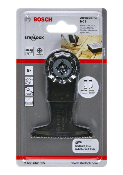Das Tauchsägeblatt Starlock AII 65 BSPC ermöglicht breite und saubere Schnitte in Hartholz. Seine dreidimensionale japanische Zahnanordnung besteht aus scharfgeschliffenen Zähnen, die ideal für das Sägen von Hartholz geeignet sind. Diese Zahnanordnung minimiert die Wärmeentwicklung und ermöglicht ausrissfreie Schnitte ohne Auszackung oder Hitzespuren. Die flache Blattgestaltung reduziert Lateralschwingung und ermöglicht mittels direkter Kraftübertragung präzise Schnitte. Dieses Produkt wird verwendet für das Tauchsägen in Hartholz oder Holzbrettern sowie das Sägen von Holzpaneelen. Die abgerundete Blattspitze (Curved-Tec) ermöglicht präzise und glatte Tauchschnitte. Das Starlock-Aufnahmesystem ermöglicht einen schnellen Blattwechsel ohne Blattberührung in drei Sekunden. Das Aufnahmesystem ermöglicht durch seine dreidimensionale enge Passung maximale Kraftübertragung zwischen Maschine und Zubehör.