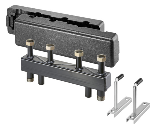 Flamco Zweirohr-Hahnblock Multigrip G 1/2 M x G 3/4 F, Eck, mit Nippel und Konusteilen, Messing vernickelt