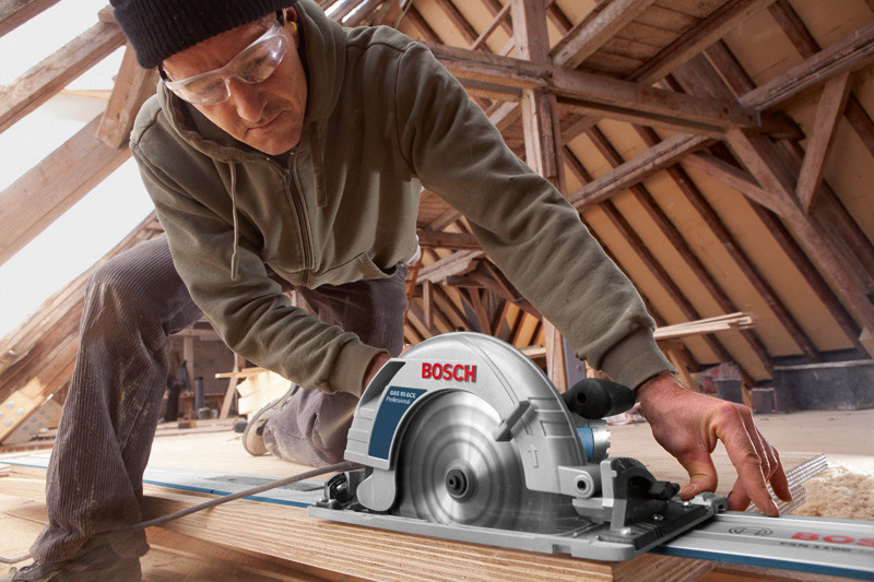 Handkreissäge GKS 85 G, Mit ihrer hohen Leistung und Führungsschienen-Kompatibilität ist die GKS 85 G Professional der ideale Partner für präzise, geführte Schnitte. Ihr Hochleistungsmotor mit 2.200 W für Schnitte bis 85 mm macht sie zu einer guten Wahl für schwierige Anwendungen. Ihre präzisen Schnittergebnisse sind dem kompatiblen Bosch Führungsschienensystem zu verdanken. Die GKS 85 G Professional ermöglicht mit ihrem optimierten Spanabweiser und dem Turbogebläse eine konstant bessere Sicht auf die Anrisslinie. Verschiedene Materialien wie Massivholz und Holzwerkstoffe wie OSB, Sperrholz oder MDF können diese Kreissäge nicht stoppen. Sie ist mit dem Bosch Führungsschienensystem kompatibel, und ebenso mit den Führungsschienensystemen von Mafell, Festool und Makita. Die GKS 85 G Professional ist mit Spindelarretierung, Fußplatte aus Aluminiumdruckguss, Absaugstutzen und Sanftanlauf ausgestattet. Absaugadapter (ET-Nr. 1 619 P01 627). Innensechskantschlüssel SW 5 (ET-Nr. 1 907 950 006). 1 x Kreissägeblatt, Optiline Wood, 235 x 30/25 x 2,8 mm, 24 (2 608 640 725). L-BOXX374N (1 600 A01 2G3). 1/1 L-BOXX-Einlage für Gerät (1 600 A00 2W4)