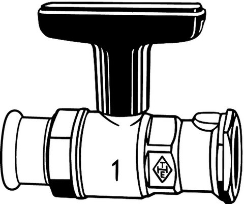 Heimeier Pumpen-Kugelhahn Globo P-S Rp 1 x 1", Pressanschluss mit SC-Contur, mit Schwerkraftbremse, Rotguss