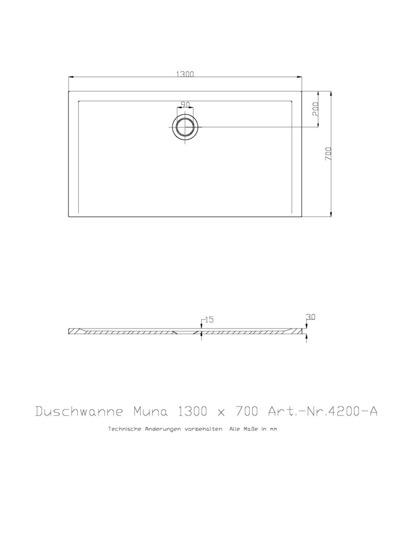Hoesch Mineralguss-Duschwanne Muna 130 x 70 x 3 cm, Telegrau, Solique