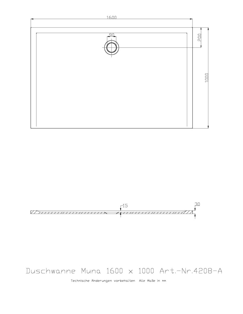 Hoesch Mineralguss-Duschwanne Muna 160 x 100 x 3 cm, weiß matt, Solique