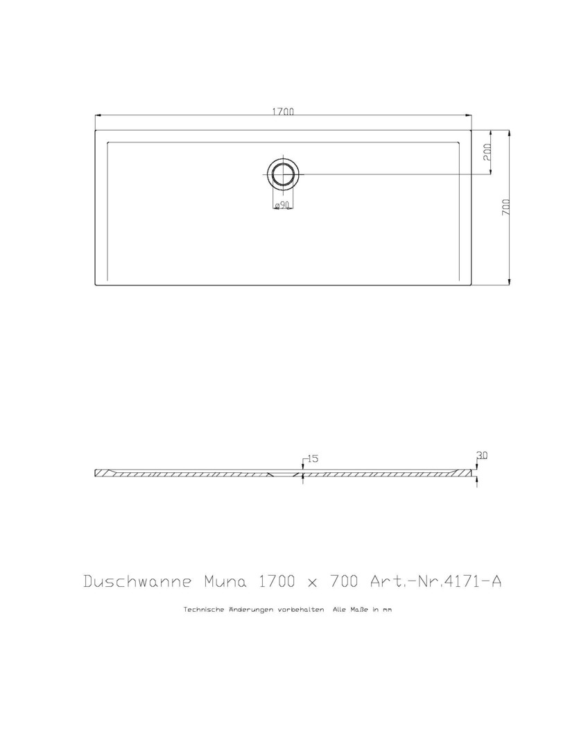 Hoesch Mineralguss-Duschwanne Muna 170 x 70 x 3 cm, Telegrau, Solique
