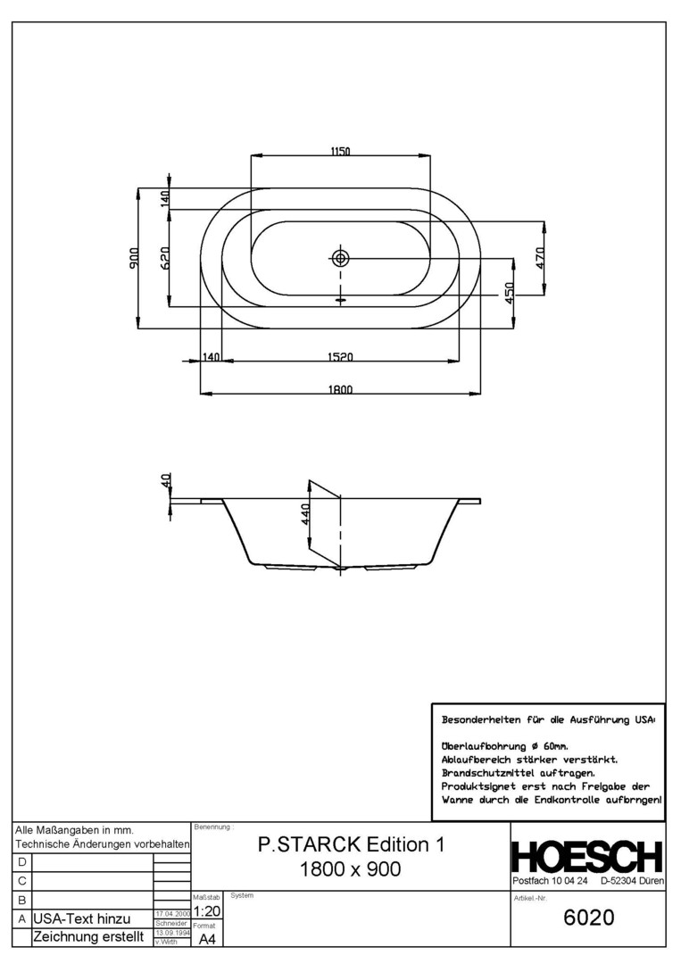 Hoesch Oval-Badewanne Philippe Starck Edition 1 180x90cm, weiß