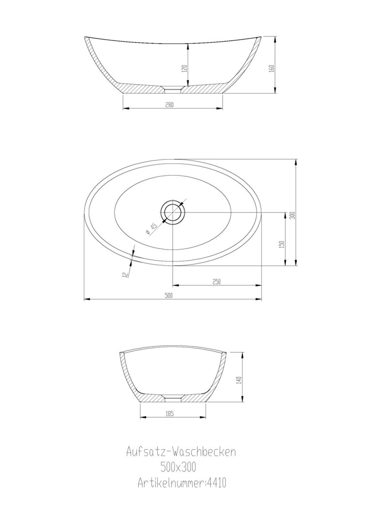 Hoesch Waschbecken Namur 50 x 30 cm, schieferngrau-weiß, ohne Überlauf
