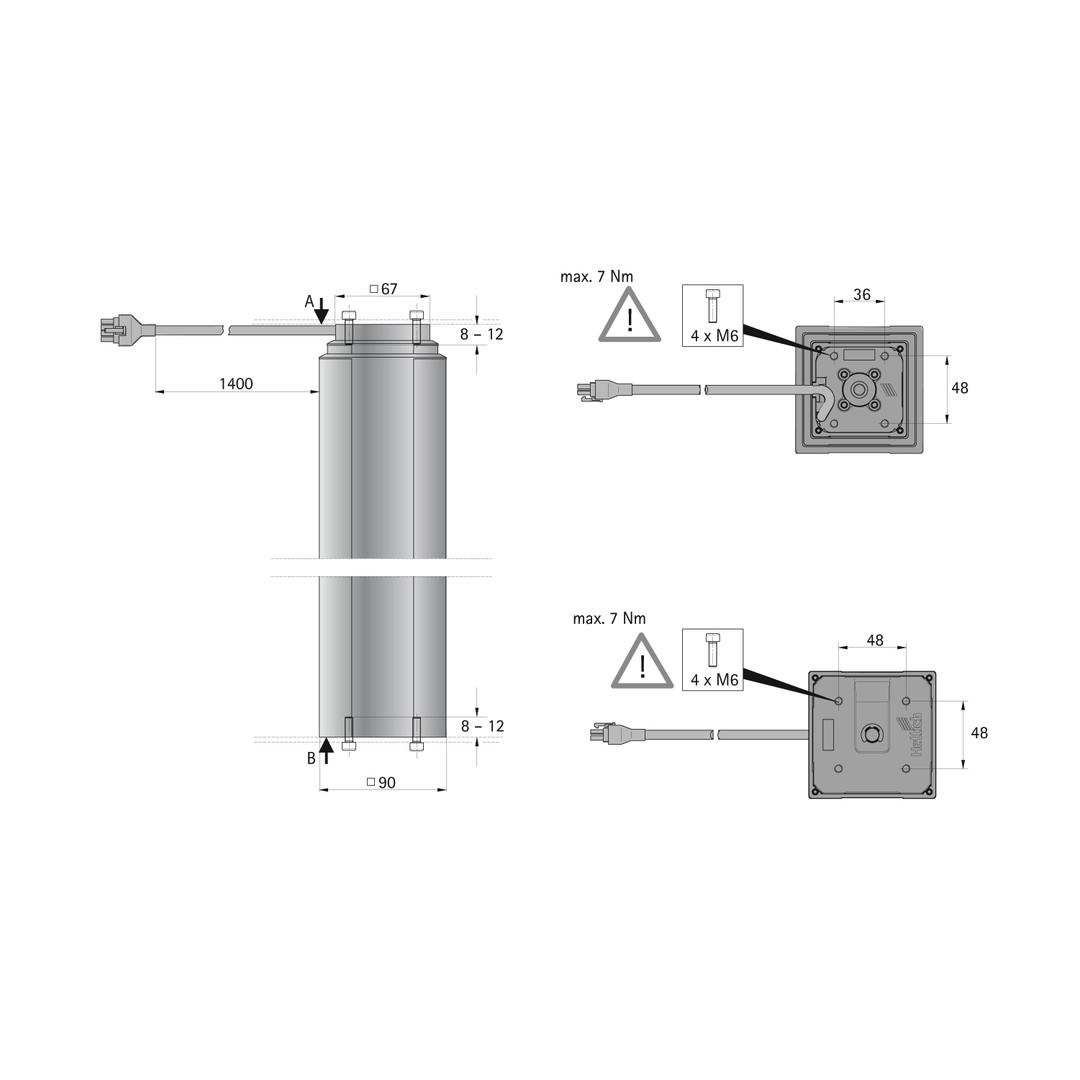• Elektromotorische Hubsäule, quadratisch 90 x 90 mm