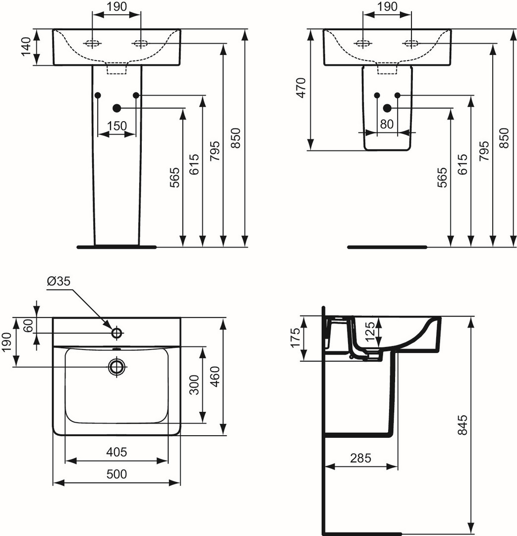 Ideal-Standard Waschtisch Connect Cube 50 x 46 cm, weiß, mit Hahnloch und Überlauf