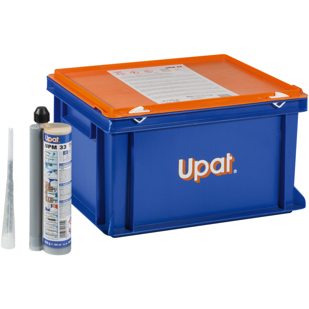 Der preiswerte, zweikomponentige Injektionsmörtel UPM 33 auf Basis von Vinylester kann in Verbindung mit Gewindestangen (ASTA und UPM-A) bzw. Siebhülse (UPM-SH) und Gewindestange in nahezu allen Baustoffen zulassungskonform eingesetzt werden. Er kann in Vorsteck- oder Durchsteckmontage gesetzt werden und erreicht dabei ein hohes Lastniveau. Die 360 ml Kartuschengröße eignet sich hervorragend für den häufigen Gebrauch und kann nur mit einer Profi-Auspresspistole ausgepresst werden.