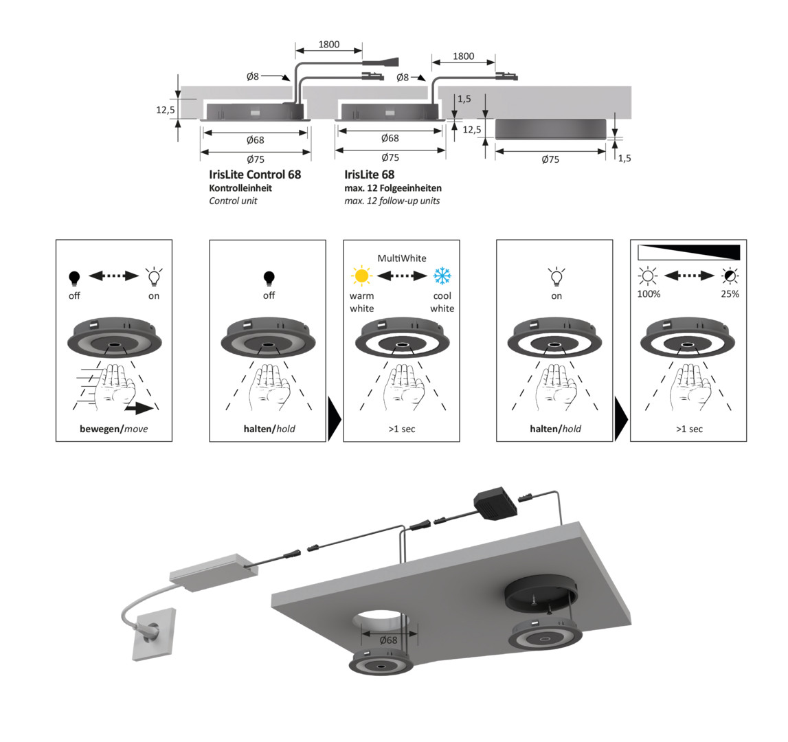 IrisLite 68 Control, WarmWeiß, 2.7W, Schwarz