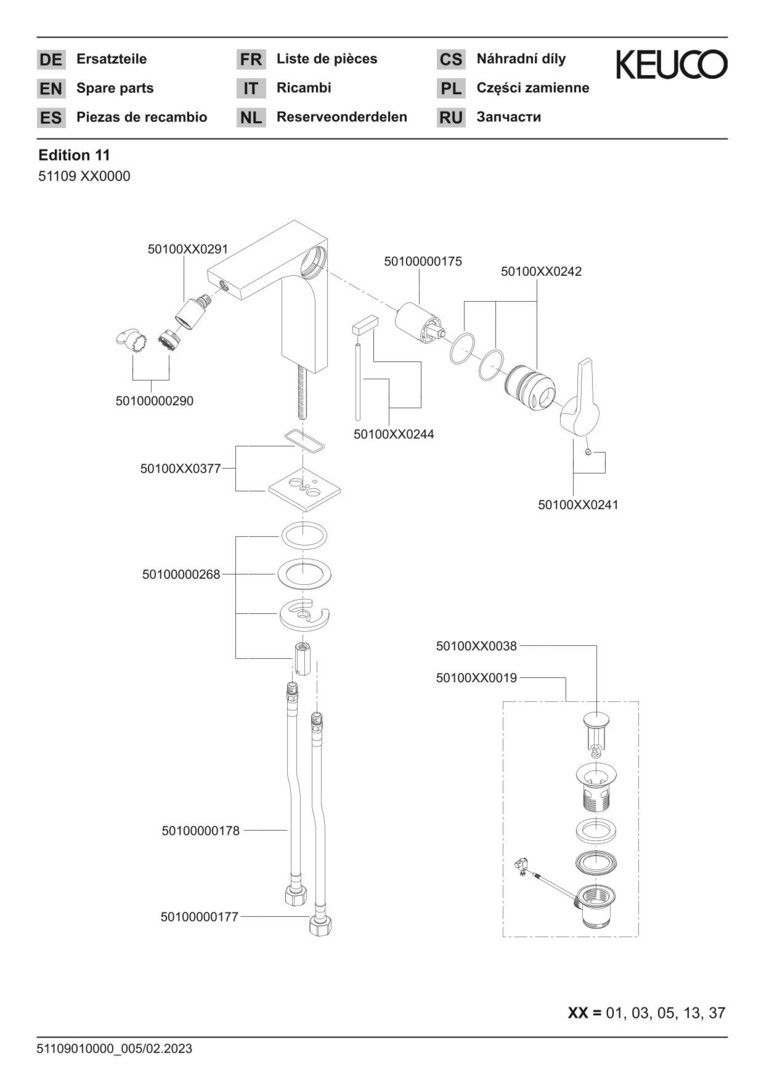 KEUCO Bidet-Einhebelmischer Edition 11 Ausladung 139mm, mit Ablaufgarnitur, Bronze gebürstet