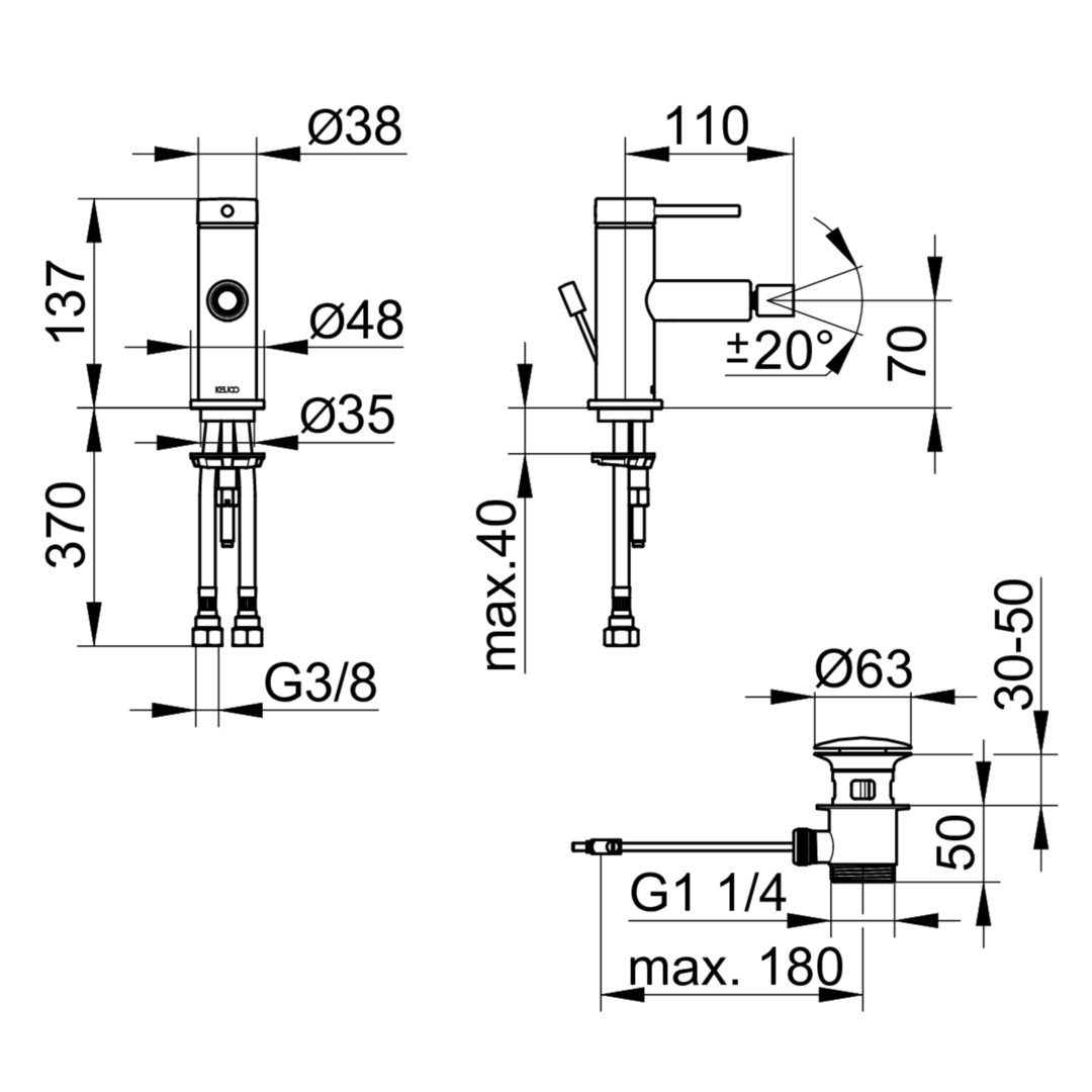 KEUCO Bidet-Einhebelmischer IXMO Soft Ausladung 110mm, mit Ablaufgarnitur, schwarz matt