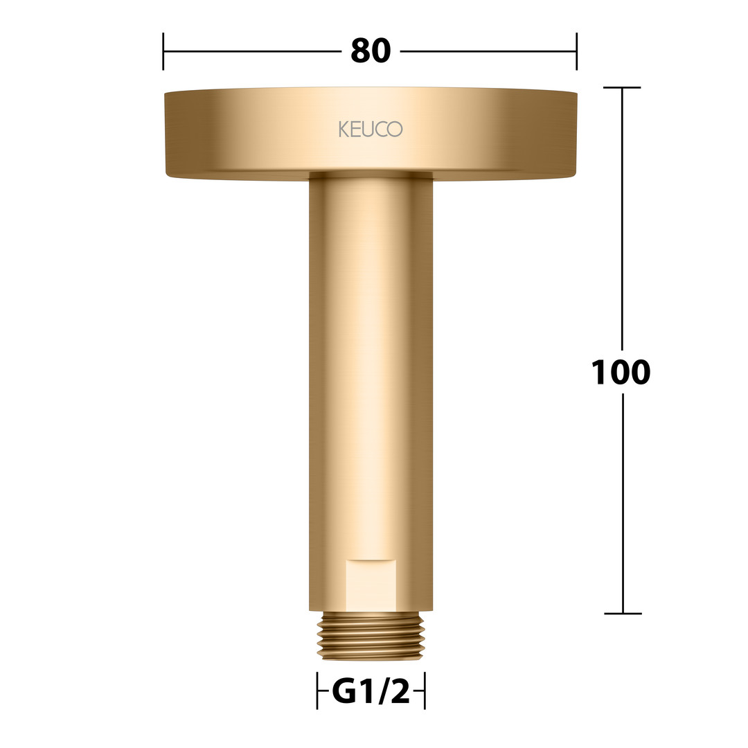 KEUCO Brausearm Ausladung 100 mm, messing gebürstet, Deckenanschluss, Rosette rund
