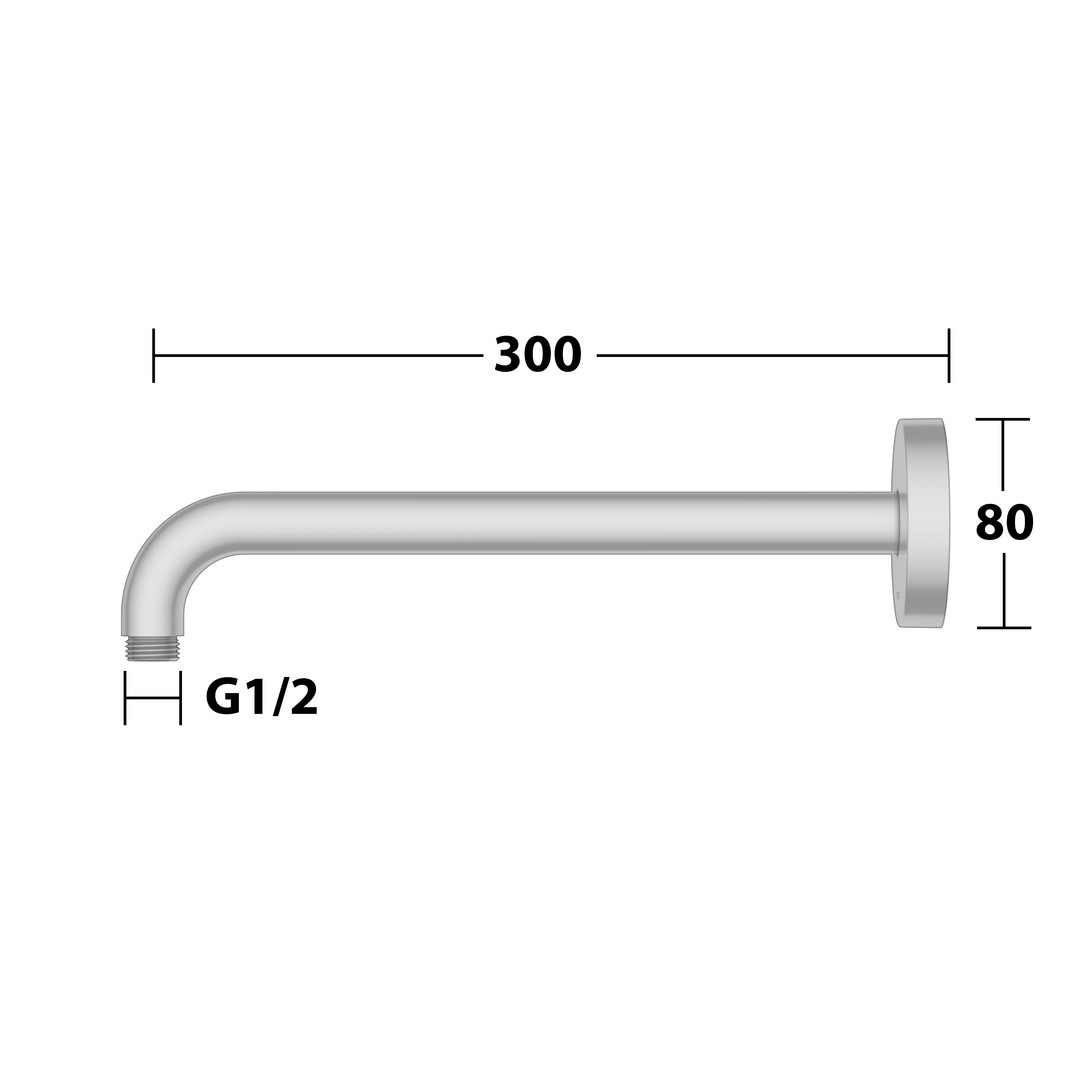 KEUCO Brausearm Ausladung 300 mm, Aluminium-finish, Wandanschluss, Rosette rund
