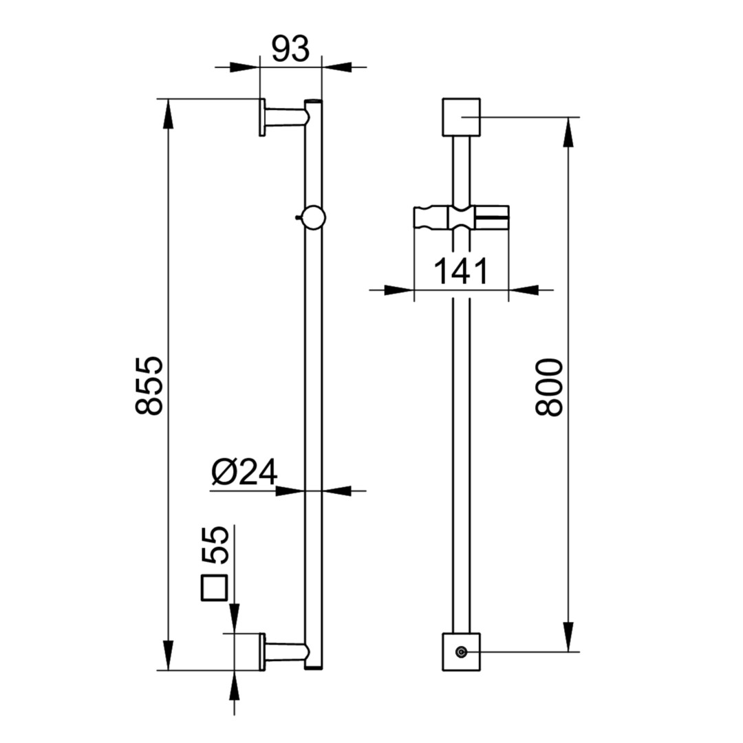 KEUCO Brausestange IXMO schwarz matt, Höhe 855mm, Brauseschieber, Rosetten eckig