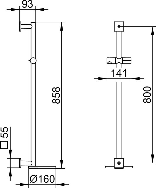 KEUCO Brausestange IXMO verchromt/schwarzgrau, Höhe 855mm, mit Ablage, Rosetten eckig