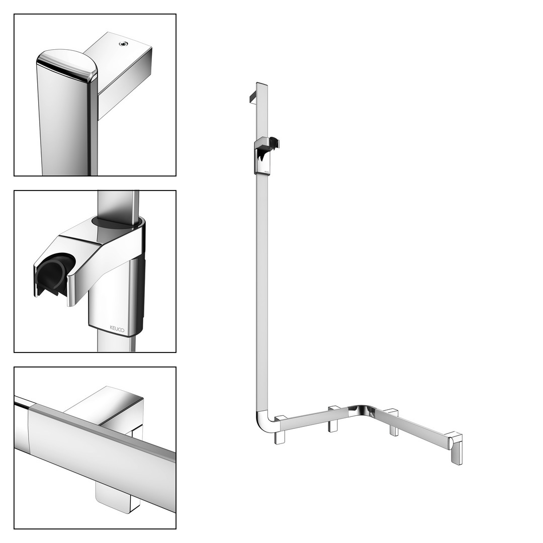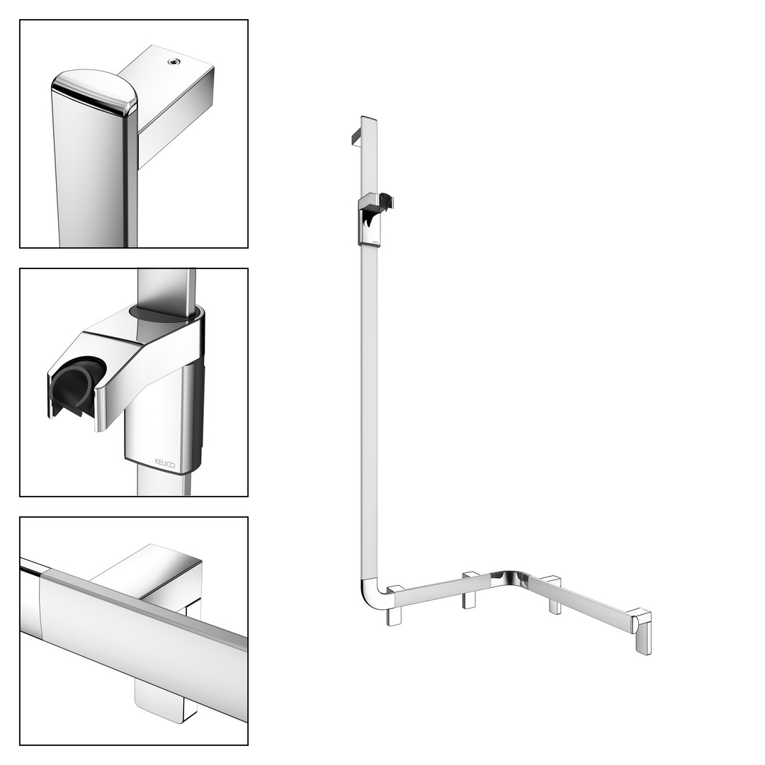 KEUCO Duschhandlauf AXESS Aluminium silber-eloxiert/verchromt, 550 mm, mit Brausestange, linke Ausführung