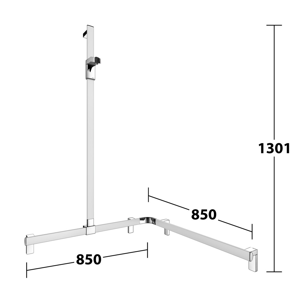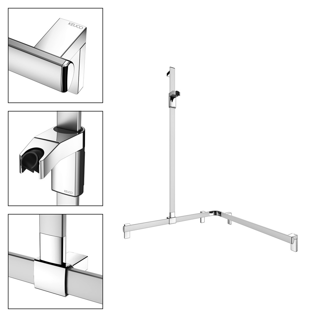 KEUCO Duschhandlauf AXESS Aluminium silber-eloxiert/verchromt, 850/850 mm, mit Brausestange, linke Ausführung