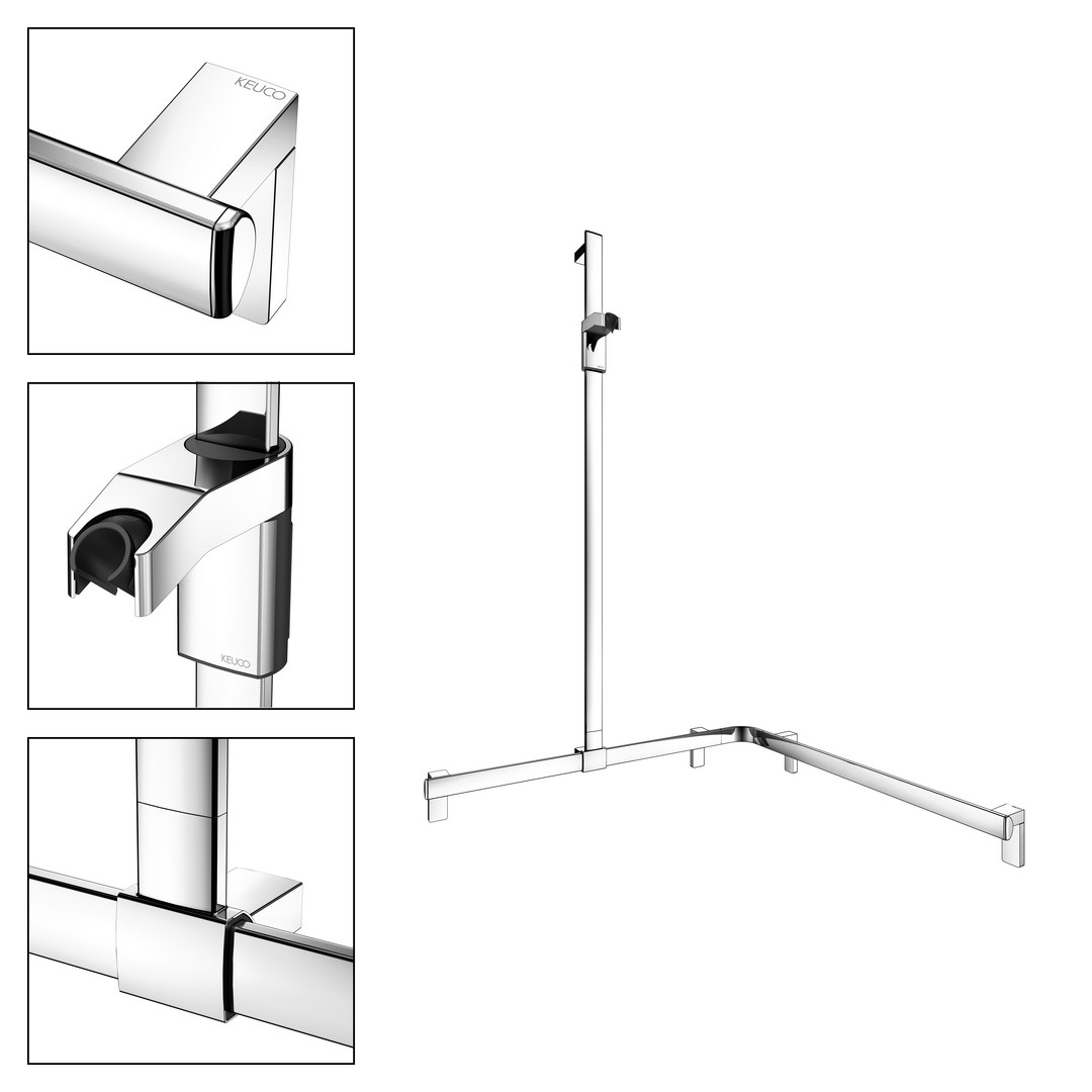 KEUCO Duschhandlauf AXESS verchromt, 850/850 mm, mit Brausestange, linke Ausführung