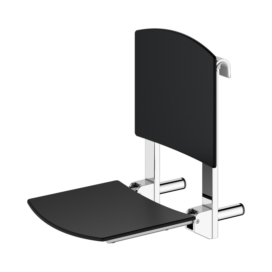 KEUCO Duschsitz AXESS Care mit Rückenlehne, einhängbar, verchromt, schwarz
