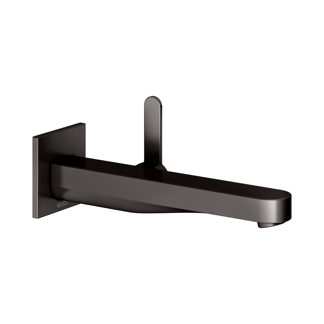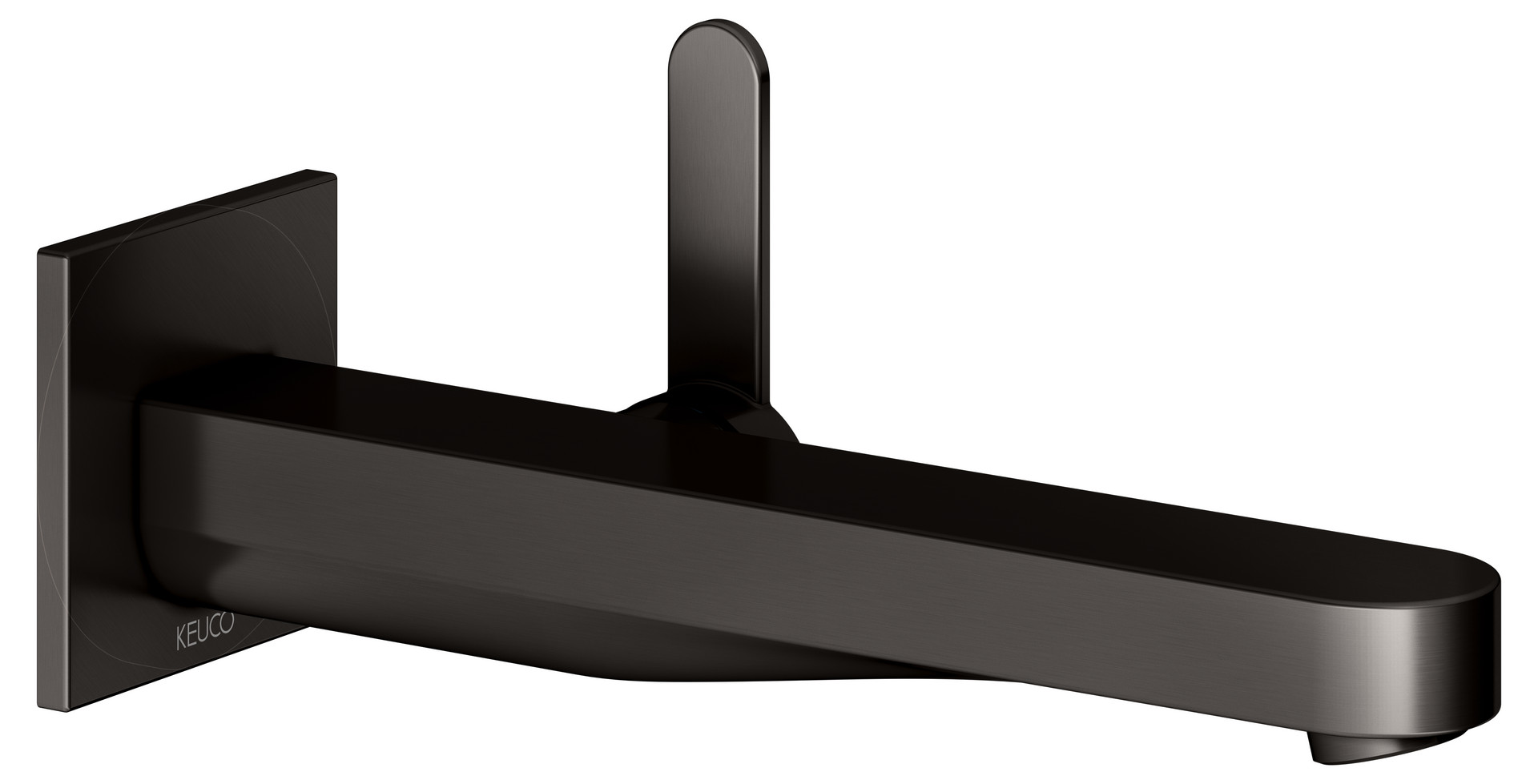 KEUCO Einhebel-Waschtischmischer IXMO Flat Ausladung 225 mm, titanschwarz gebürstet, Wandmontage, eckige Rosette