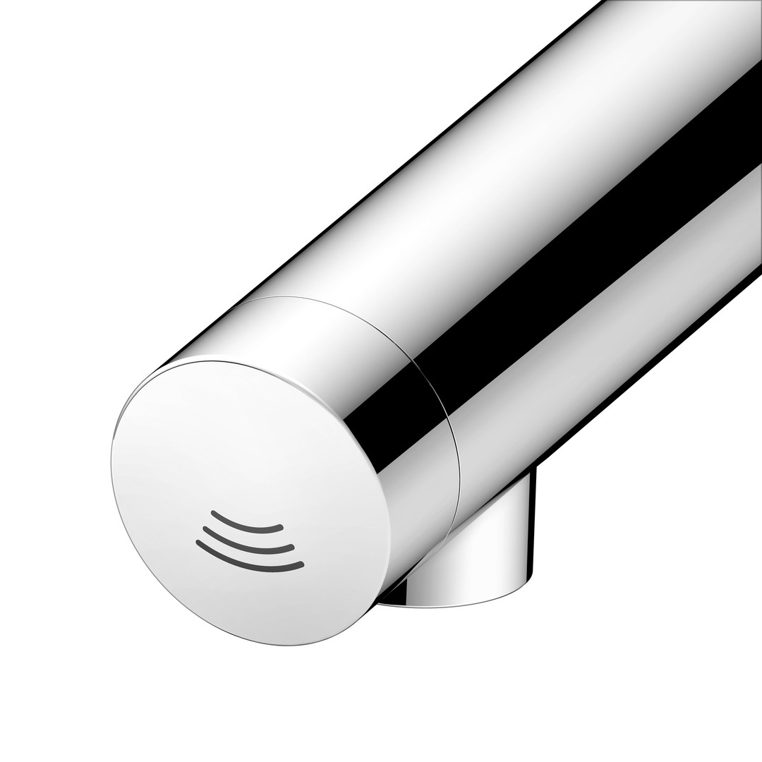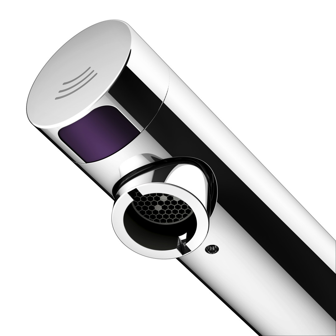ohne Ablaufgarnitur, Anschlussart Grundkörper, Infrarot-Sensorik (Reichweite und Nachlaufzeit einstellbar), manueller Wasserstop zur Reinigung, optionale Hygienespülung (12/24 h) einstellbar, Spannung 6 V, Eingangsbereich 100-240 V, Mischventil mit keramischen Dichtscheiben, Luftsprudler M 20x1, Durchflussmenge begrenzt auf 5 l/min, für Durchlauferhitzer geeignet, geräuschgeprüft, Bluetooth Adapter optional