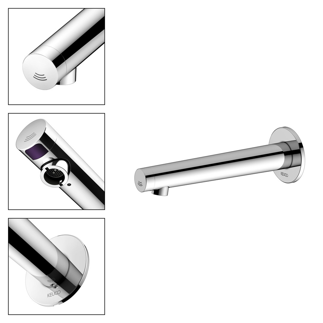 KEUCO Elektronik-Waschtischmischer IXMO verchromt, Unterputz, Netzbetrieb, Ausladung 225mm, runde Rosette