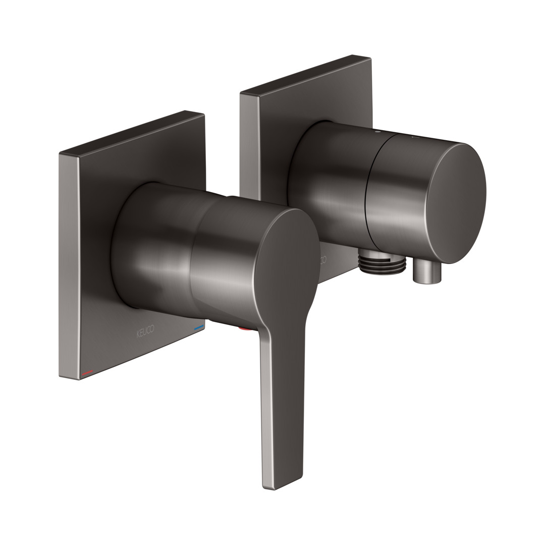 KEUCO Fertigmontageset Edition 11 Unterputz, mit Schlauchanschluss, für 2 Verbraucher, titanschwarz gebürstet
