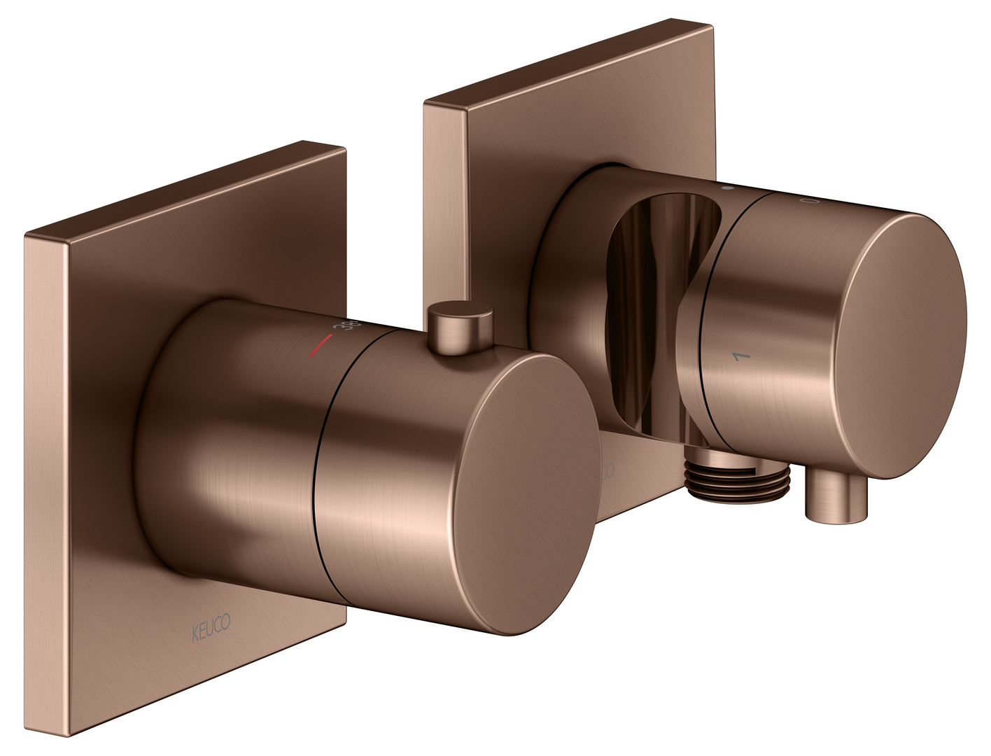 KEUCO Fertigmontageset Edition 11 Unterputz-Thermostatarmatur, Schlauchanschluss, Brausehalter, für 2 Verbraucher, rotgold gebürstet