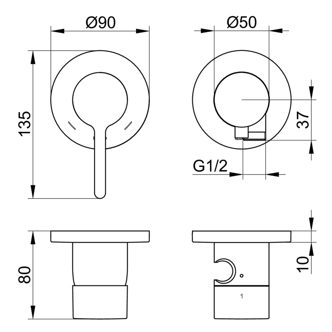 Rosettenform rund, Anschluss mit Grundkörper G 1/2, Mischwasserkartusche mit keramischen Dichtscheiben, mit Temperaturbegrenzung, Durchflussmenge 23 l/min, für Durchlauferhitzer geeignet, geräuschgeprüft