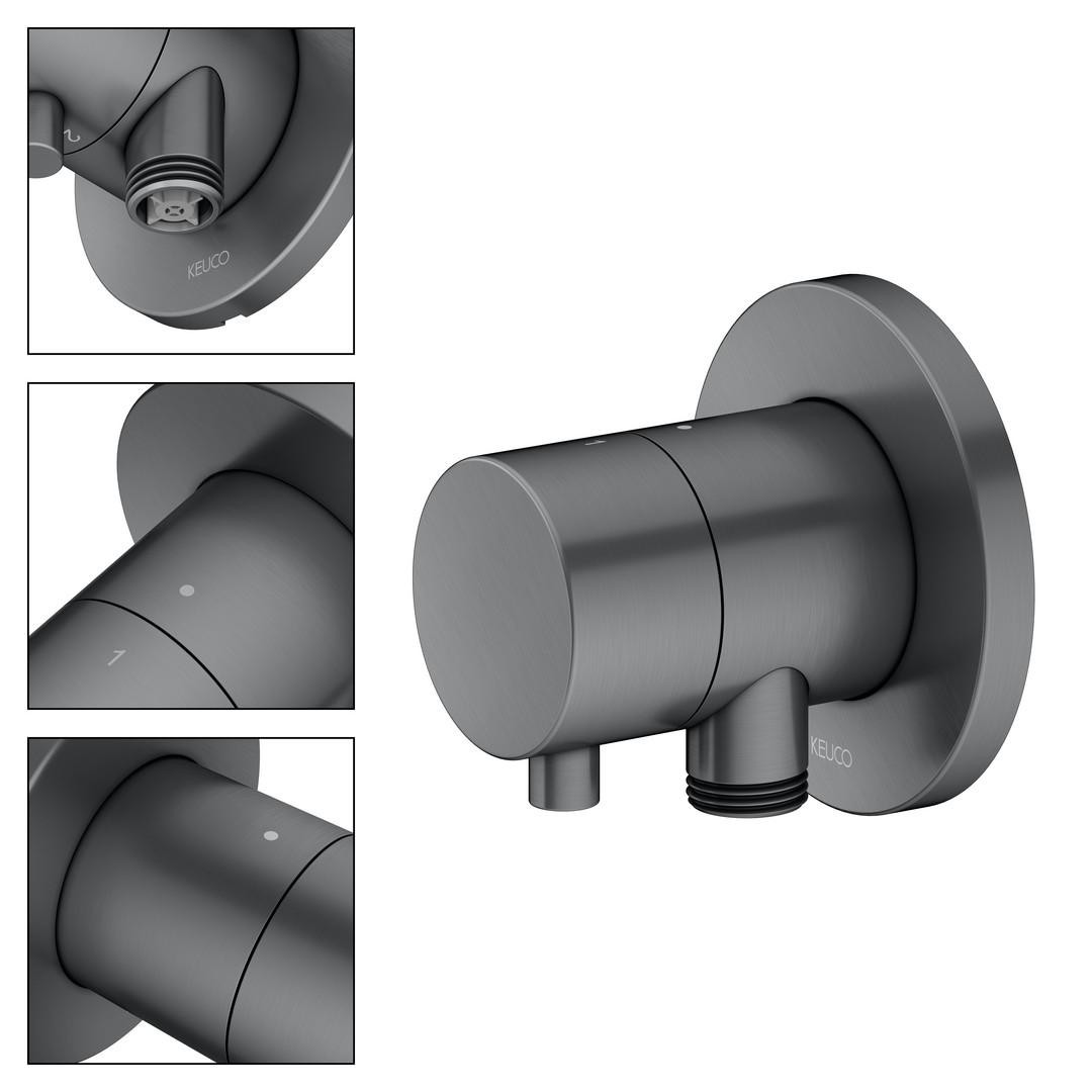 KEUCO Fertigmontageset IXMO Comfort UP-2-Wege-Umstellventil, rund, Schlauchanschluss, Schwarzchrom gebürstet