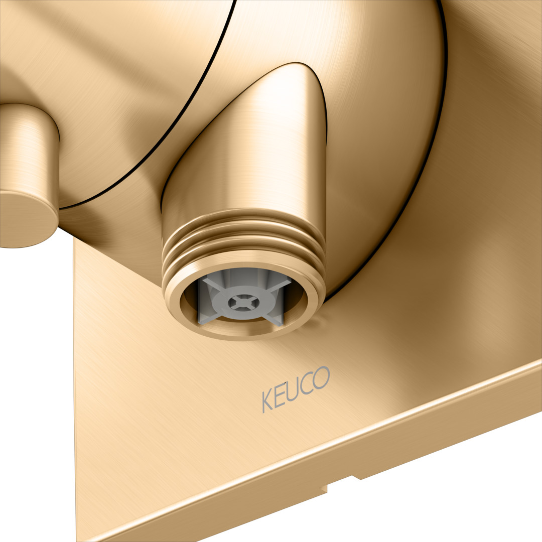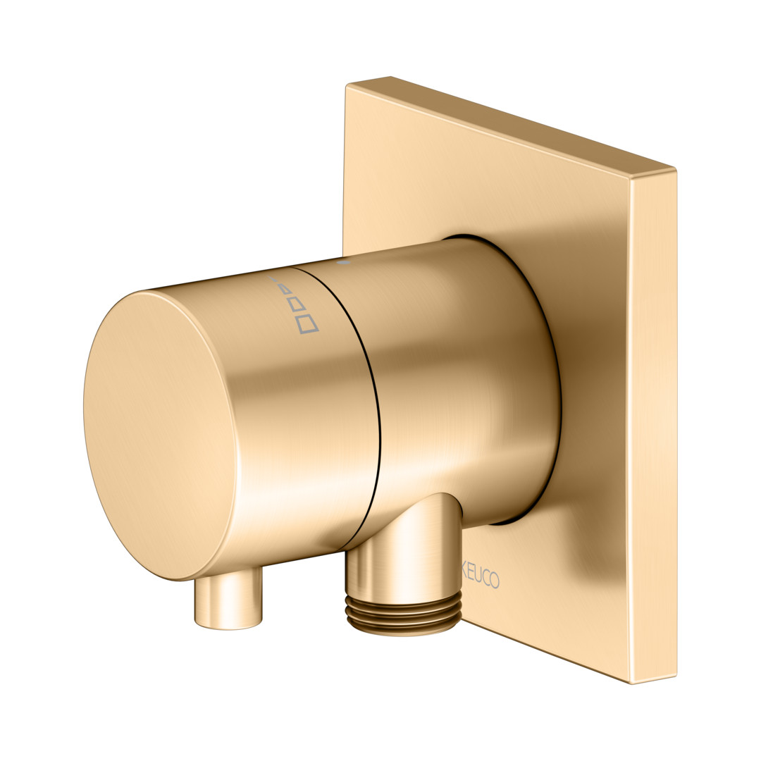 KEUCO Fertigmontageset IXMO Comfort messing gebürstet, UP-Absperrventil, eckig, Schlauchanschluss/Brausehalter