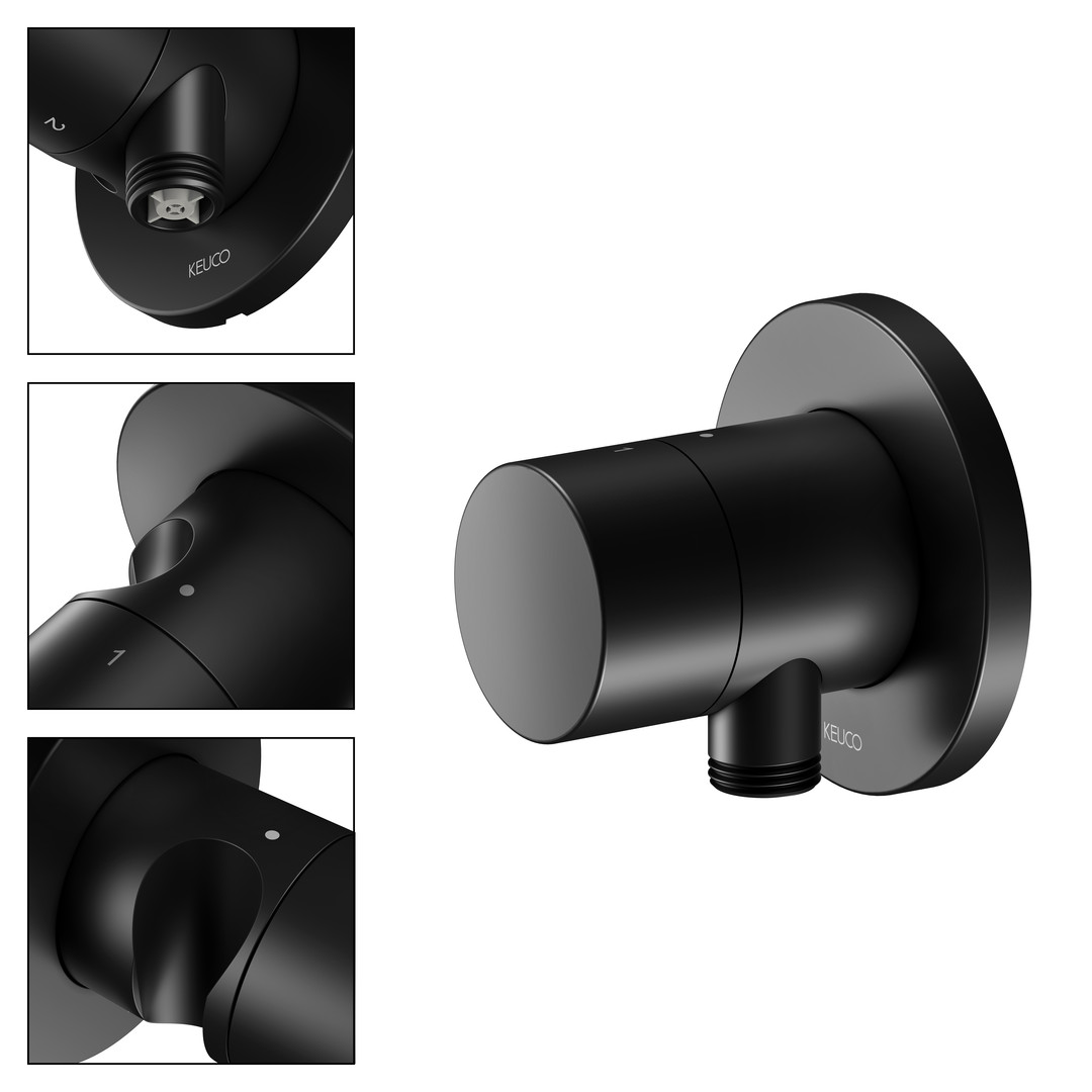 KEUCO Fertigmontageset IXMO Pure UP-2-Wege-Umstellventil, rund, Schlauchanschluss/Brausehalter, schwarz matt