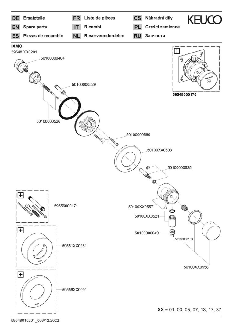 KEUCO Fertigmontageset IXMO Pure UP-3-Wege-Umstellventil, rund, Schlauchanschluss/Brausehalter, verchromt
