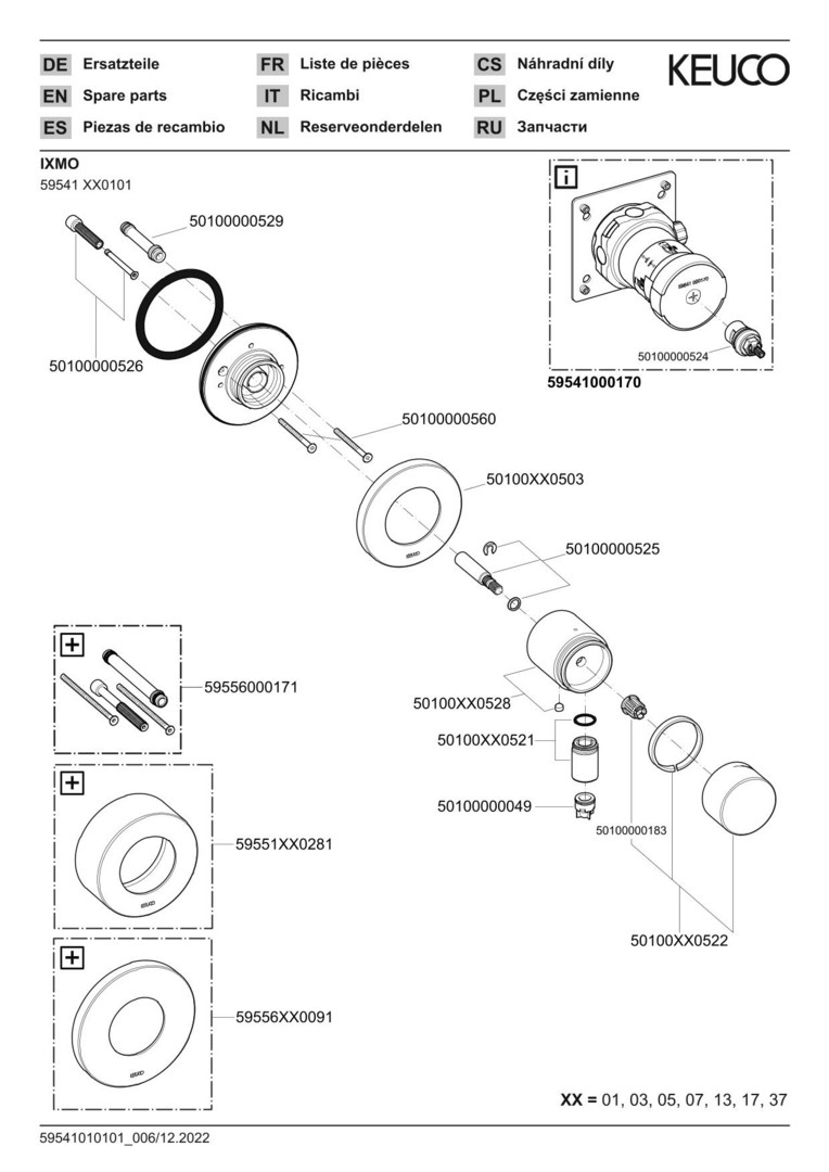 KEUCO Fertigmontageset IXMO Pure UP-Absperrventil, rund, Schlauchanschluss, 1 Verbraucher, verchromt