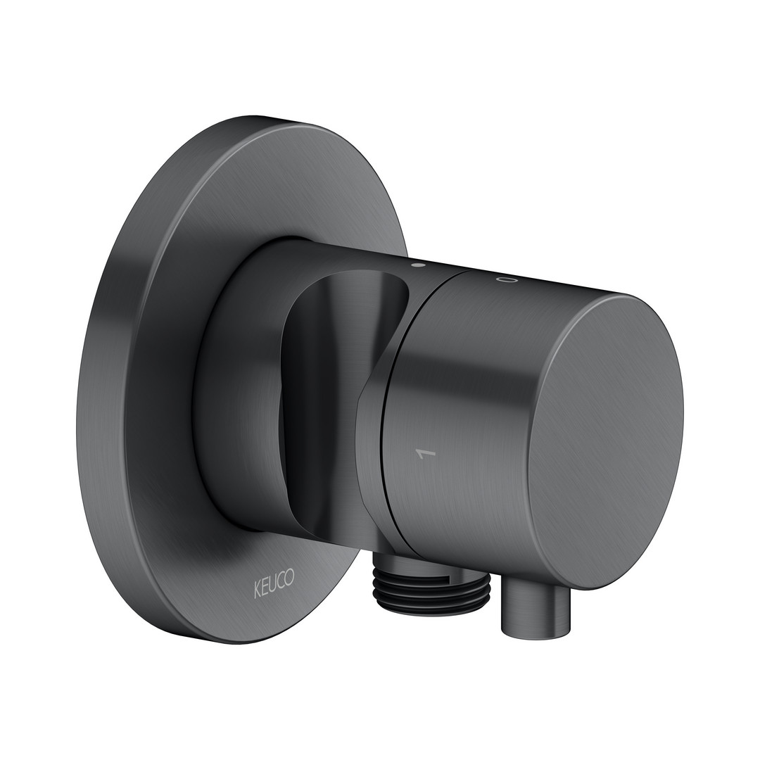 KEUCO Fertigmontageset IXMO UP-2-Wege-Ab-/Umstellventil, Brausehalter, Griff Comfort, rund, Schwarzchrom gebürstet