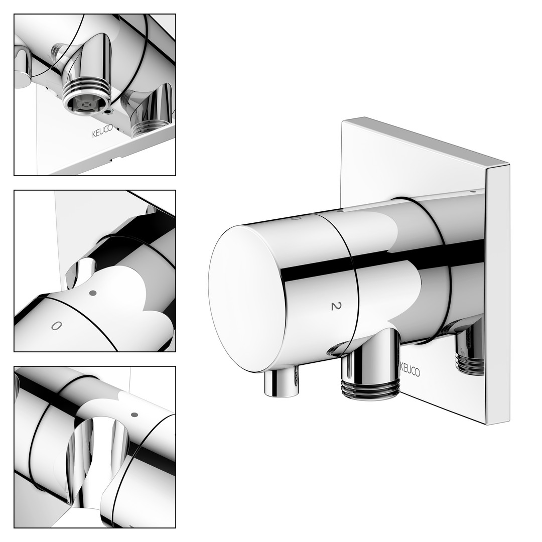 KEUCO Fertigmontageset IXMO UP-2-Wege-Ab-/Umstellventil, Brausehalter, eckig, verchromt