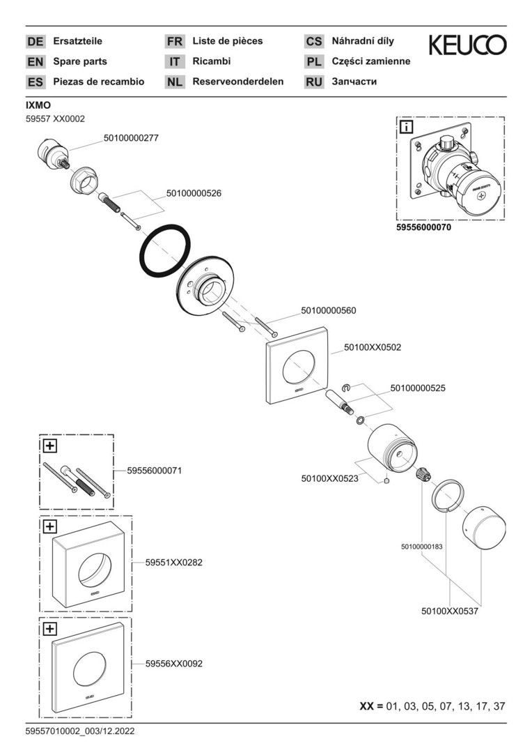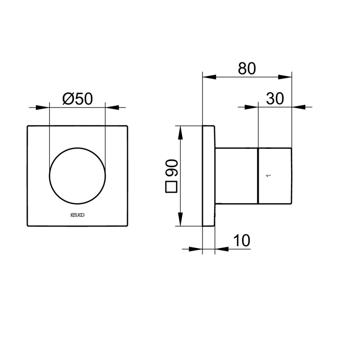 KEUCO Fertigmontageset IXMO UP-2-Wege Ab-/Umstellventil, Griff Pure, eckig, verchromt