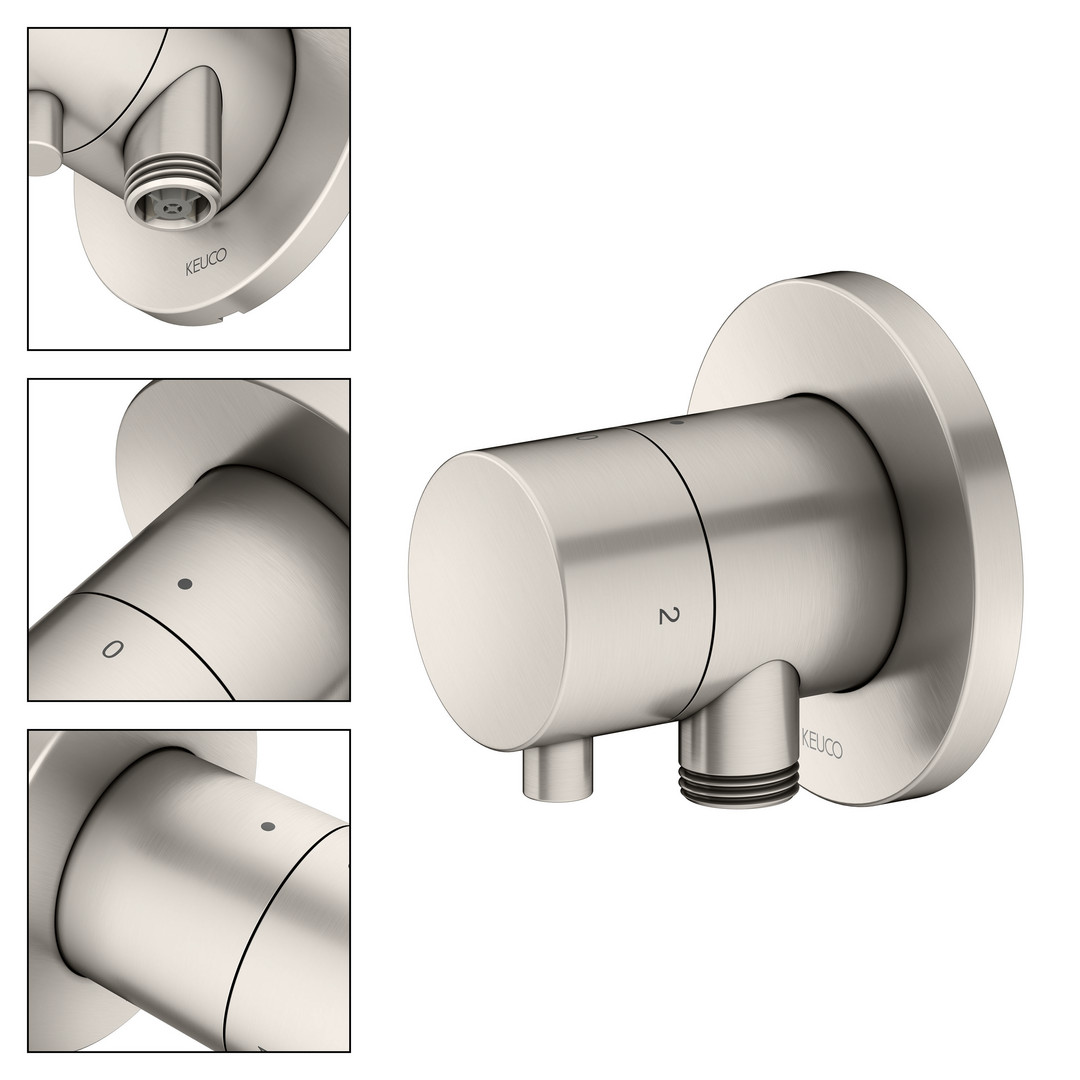 KEUCO Fertigmontageset IXMO UP-2-Wege-Ab-/Umstellventil, Schlauchanschluss, Griff Comfort, rund, Nickel gebürstet