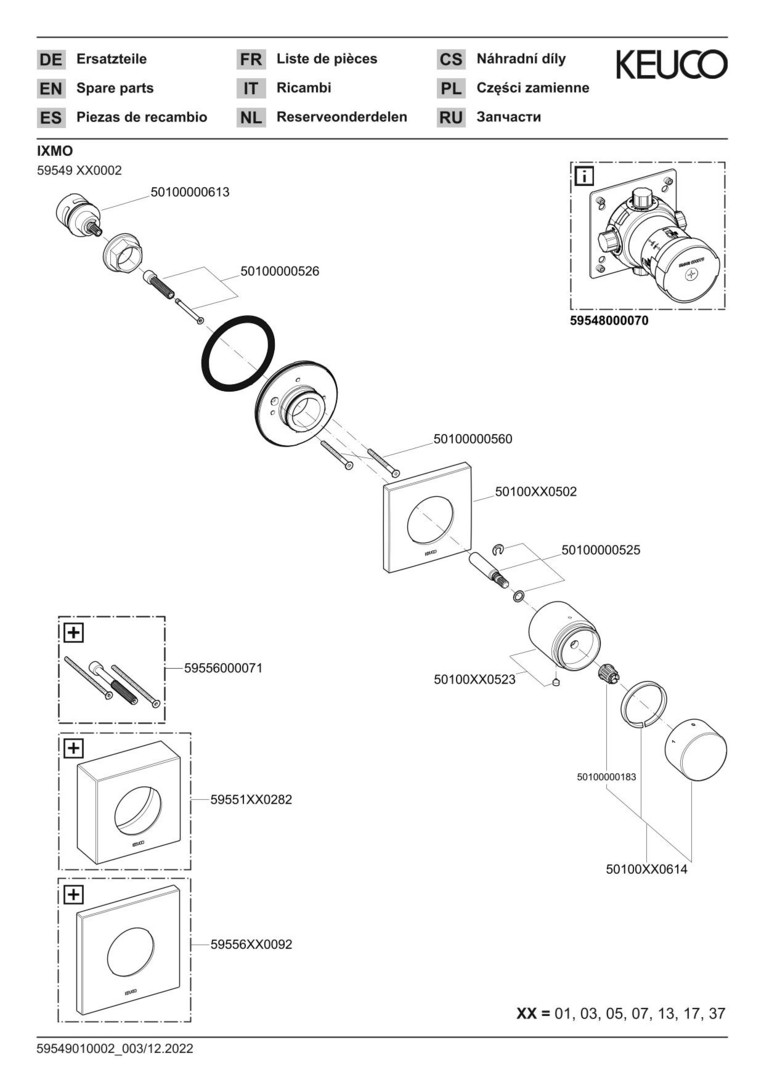 KEUCO Fertigmontageset IXMO UP-3-Wege-Ab-und Umstellventil, Griff Pure, eckig, verchromt