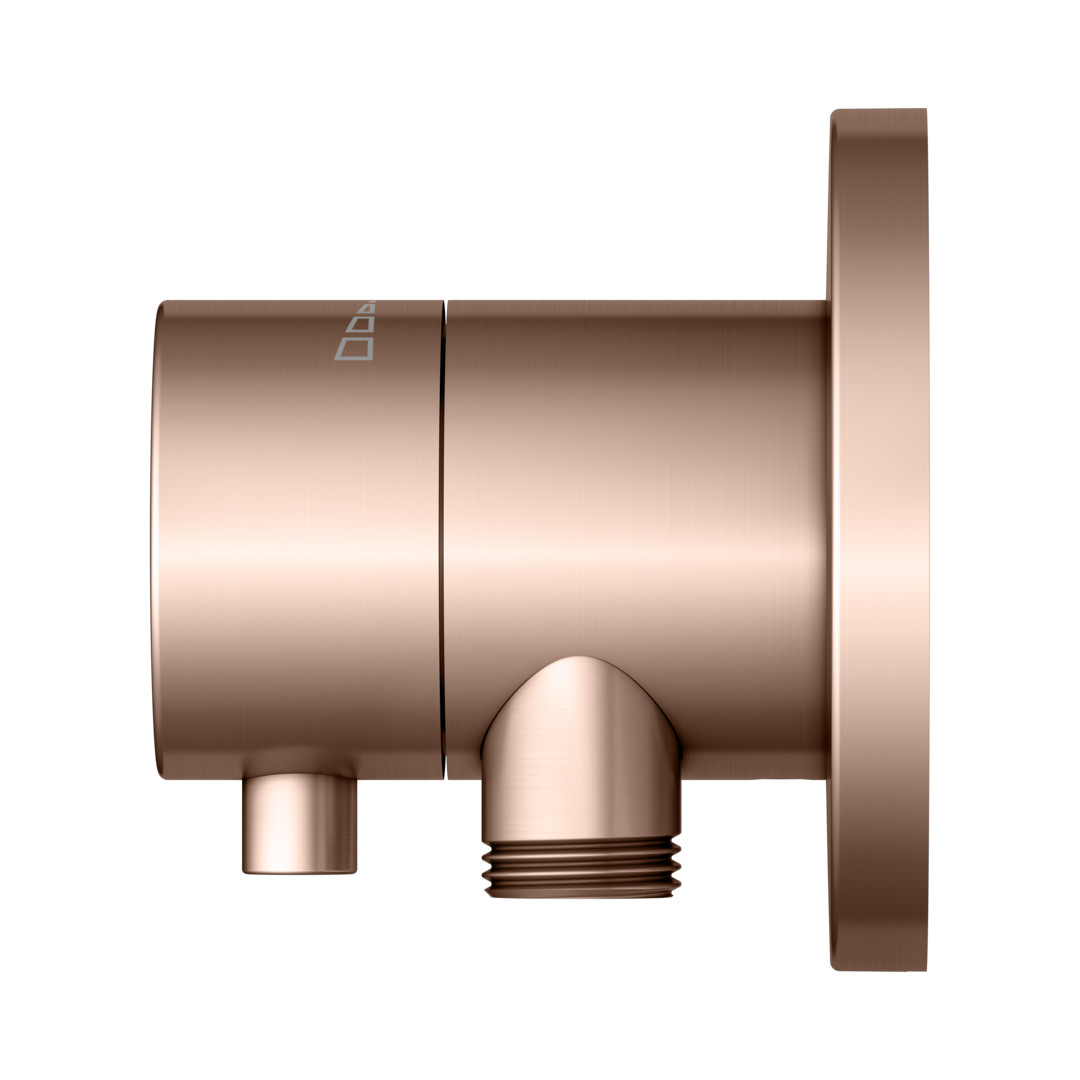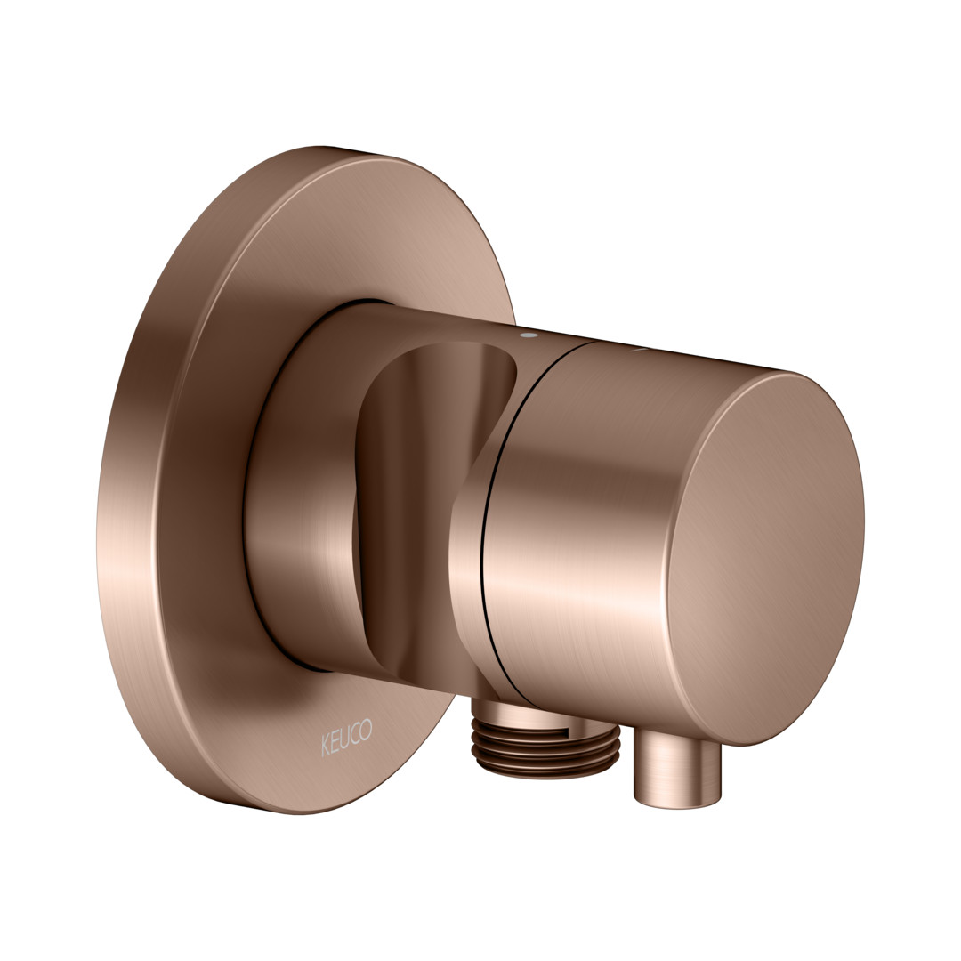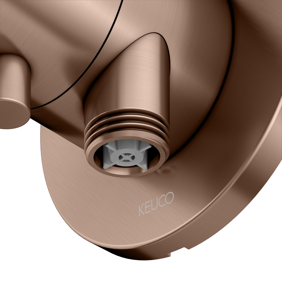 KEUCO Fertigmontageset IXMO UP-Absperrventil, Rosette rund, mit Schlauchanschluss, Brausehalter, rotgold gebürstet
