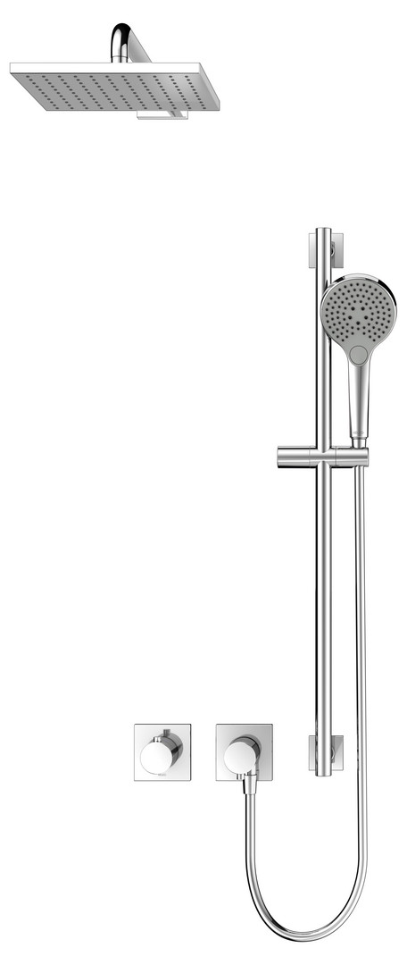 KEUCO IXMO Sets Brause-Set 10 Thermostatarmatur für 2 Verbraucher mit Brausestange und Kopfbrause eckig Thermostatarmatur, eckig mit Brausestange u. Kopfbrause verchromt