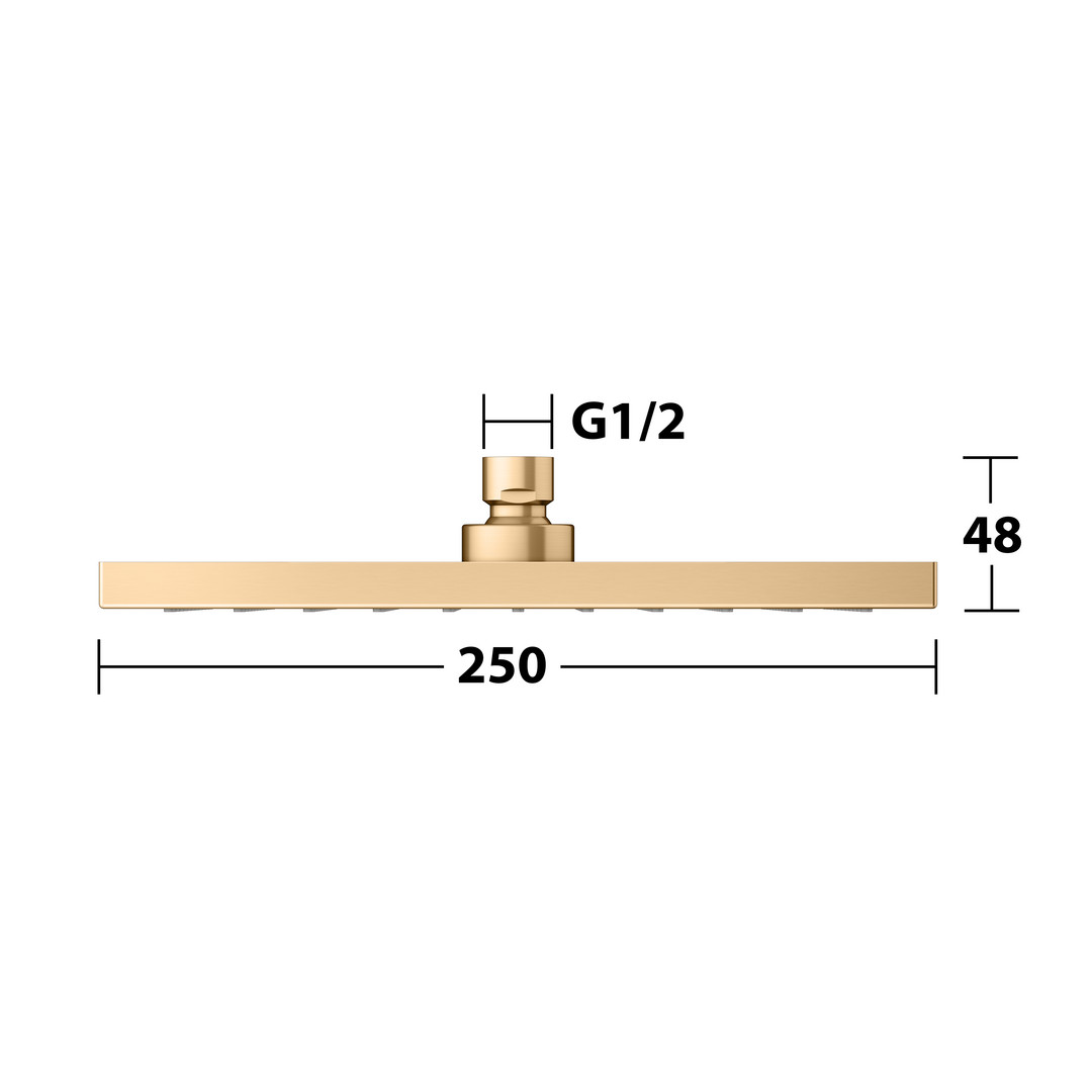 KEUCO Kopfbrause 250 x 250 mm, messing gebürstet, eckig, Kunststoffbrause