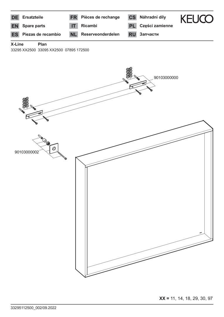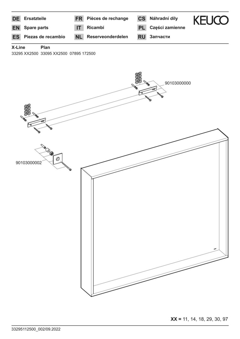 KEUCO Kristallspiegel X-Line 800 x 700 x 105 mm, Weiß, mit umlaufendem Rahmen, lackiert