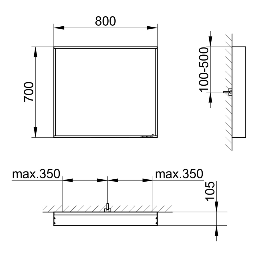 KEUCO Lichtspiegel Plan 800 x 700 x 105 mm, silber-gebeizt-eloxiert, 1 Lichtfarbe