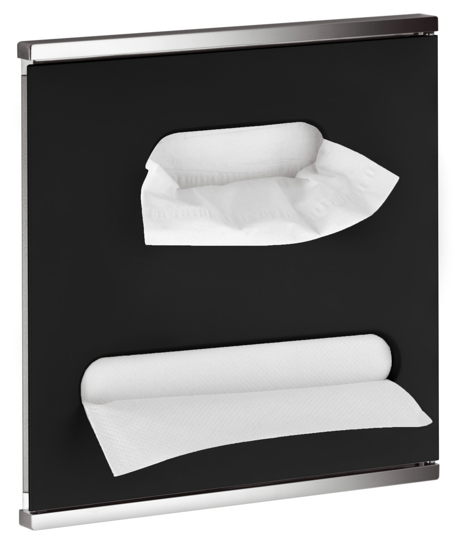 Wandmontage Unterputz, Papiertuchspender, für gefalzte Papiertücher (z-Faltung) geeignet (250 x 230 mm), Aufnahme für Kleenexbox, Betätigung von vorne, Befüllung durch abschließbare Fronttür, Einbaukorpus aus verzinktem Stahlblech, Einbautiefe 125 mm, verdeckte Befestigung, mit Befestigungs-Set