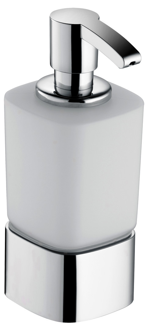 KEUCO Schaumseifenspender Elegance Tischmodell, Opalglas mattiert, mit Halter und Pumpe, verchromt